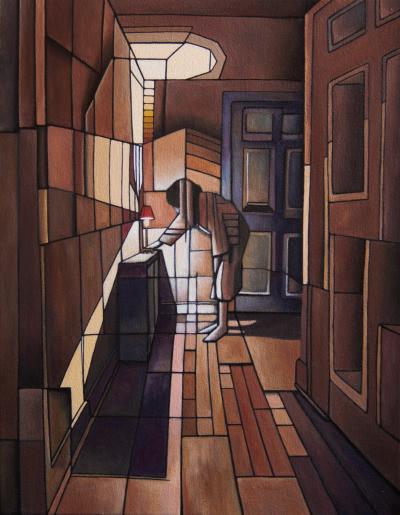 I use angular shapes and shadows in my work to create a sense of movement, space and ambiguity. Cubism and Futurism are strong influences, as is anything visual or audible that you can get a bit lost in. Qualifications 2006 Bsc Audio Technology with Multimedia 2005 HND Music and Audio Technology 1999 Advanced GNVQ Art and Design