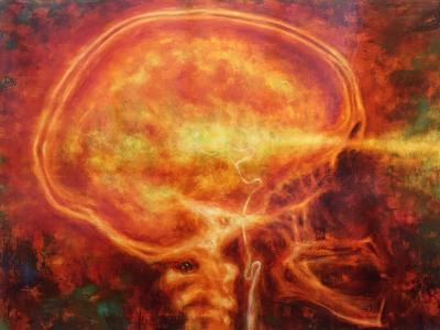The main theme that underpins both series of paintings I'm currently working on is cause and effect. The complex interaction between external forces and internal predispositions. The Arterio/Angiogram paintings focus mainly on the reward area of the brain, the dopaminergic pathway also known as the pleasure pathway, which is so influential in human emotional behaviour. This serves not only innate instinctual drives such as hunger and sex, but is also activated by mood enhancing stimuli from drugs and alcohol, to things like gambling. Research has also suggested it may play a role in the transcendent experience associated with music, art and spirituality. Although there is wealth of scientific literature relating to this subject, for example Skinner's reinforcement experiments, Pavlov's classical conditioning theory and Freud's focus on unconscious drives. We need only observe the pressure cooker that is modern life, to see how habitual escapist behaviour is intrinsic in our lives and how certain personalities are compelled to flirt with the flames. The nocturns are more of an encapsulation of the phenomena when driving in solitude on dark silent roads. It is one of the few occasions where one can pause for the thought, reflect on the past, dream of the future, while the worlds a little less frenetic.